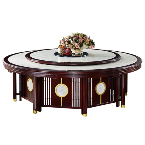 高档饭店新中式实木饭桌电动大理石餐桌图