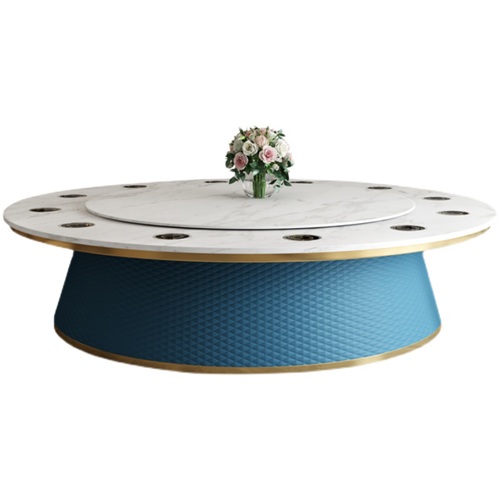 是以轻奢电动餐桌为基础,把餐桌面更换成大理石面设计而成,本款大理石自动餐桌底座设计采用很前卫的浅蓝色格子,并且在电动桌面上加了电磁炉功能,让电动餐桌功能更加丰富,就餐者有更好的就餐体验。